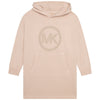 Vestido dorado caída recta y manga larga con monograma estampado al frente