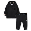 Set de pants para bebé Boss. Chamarra deportiva de felpa de algodón/poliéster con capucha, cierre / bolsillos delanteros, logo estampado en el pecho y en la manga, laterales y canesú en mangas.