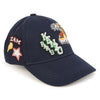 Gorra de sarga de algodón con elefante bordado en la parte delantera y logo de Kenzo bordado en la parte trasera. Forro interior en velo de algodón y grifo limpio en velo de algodón estampado "Tiger & friends".