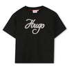 BOSS Playera para niña y teen color negro pequeño logo al frente con aplicación